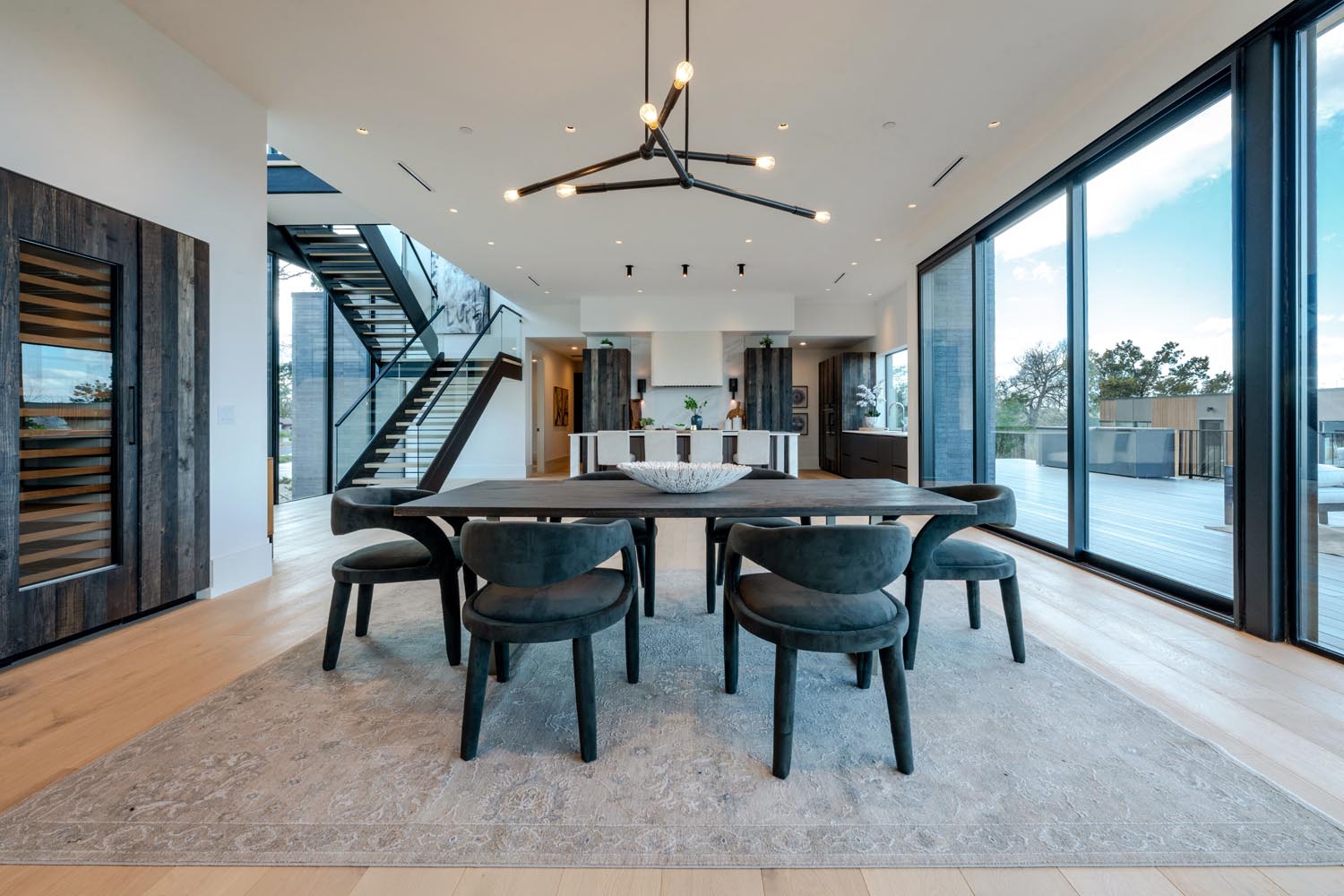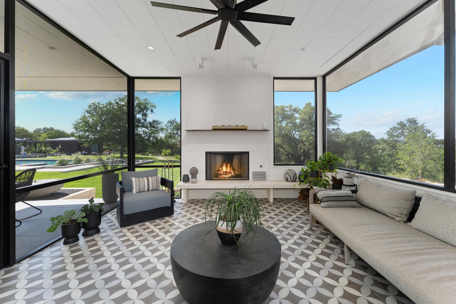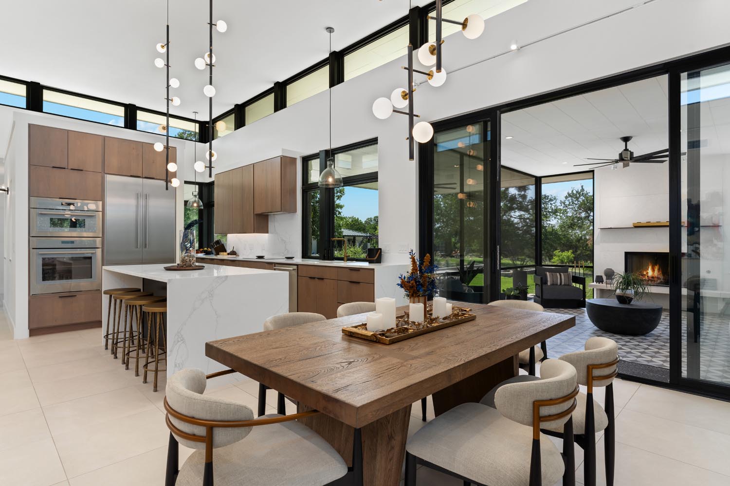 The Cary residence is designed to constantly connect you to the outdoors, creating easy, everyday moments to enjoy the surrounding landscape. The detached pool house completes the perimeter of the courtyard, wrapping the water and setting the stage for relaxed entertaining outside. Just off the main living areas, an outdoor kitchen naturally carries the energy of the interior outside, blurring the line between indoor and out.