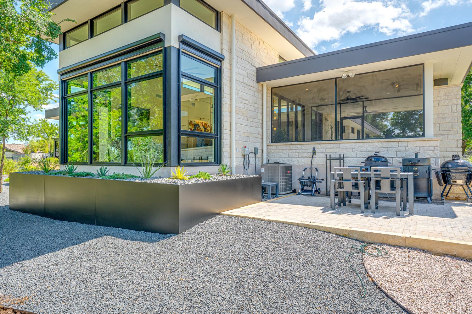 Set on five acres along Brushy Creek in the Texas Hill Country north of Austin, this contemporary home was designed for a couple looking to enjoy the next chapter of their lives as ‘empty nesters’. After remodeling their original 1,800 sf home and still finding it spatially inefficient, they sought a more intentional solution—one that not only reflects their design style but also supports their lifestyle.