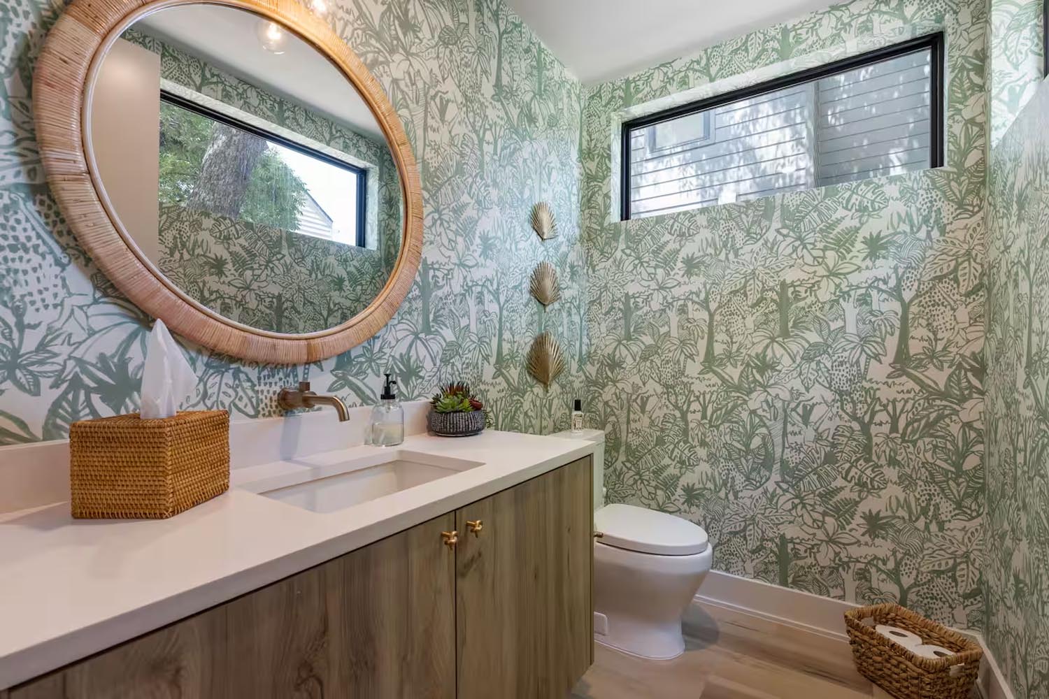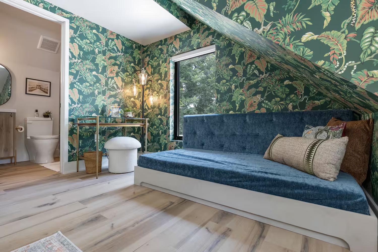 Chateau Chloe isn’t a house you tour—it’s a world you uncover. Built as a love letter to New Orleans, it rejects Austin’s copy-paste minimalism in favor of layered story: mixed metals that don’t match but somehow harmonize, bold wallpaper moments, warm lighting that makes everything feel like golden hour, and archways that slow you down like you’ve stepped into another chapter.