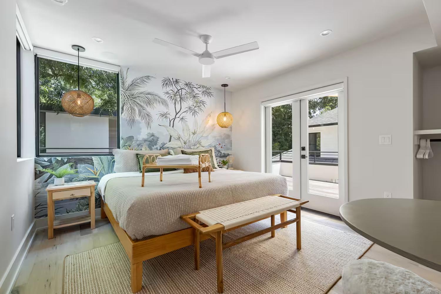Designed as a personal retreat inspired by Costa Rica, this light-filled home blurs the line between indoors and out with expansive glass, tropical landscaping, and an open kitchen-living-dining space made for gathering. A cocktail pool/hot tub create a private, resort-like feel, while hidden details like a speakeasy bookcase bedroom and a separate guest house behind a sliding fence add layers of surprise and flexibility.