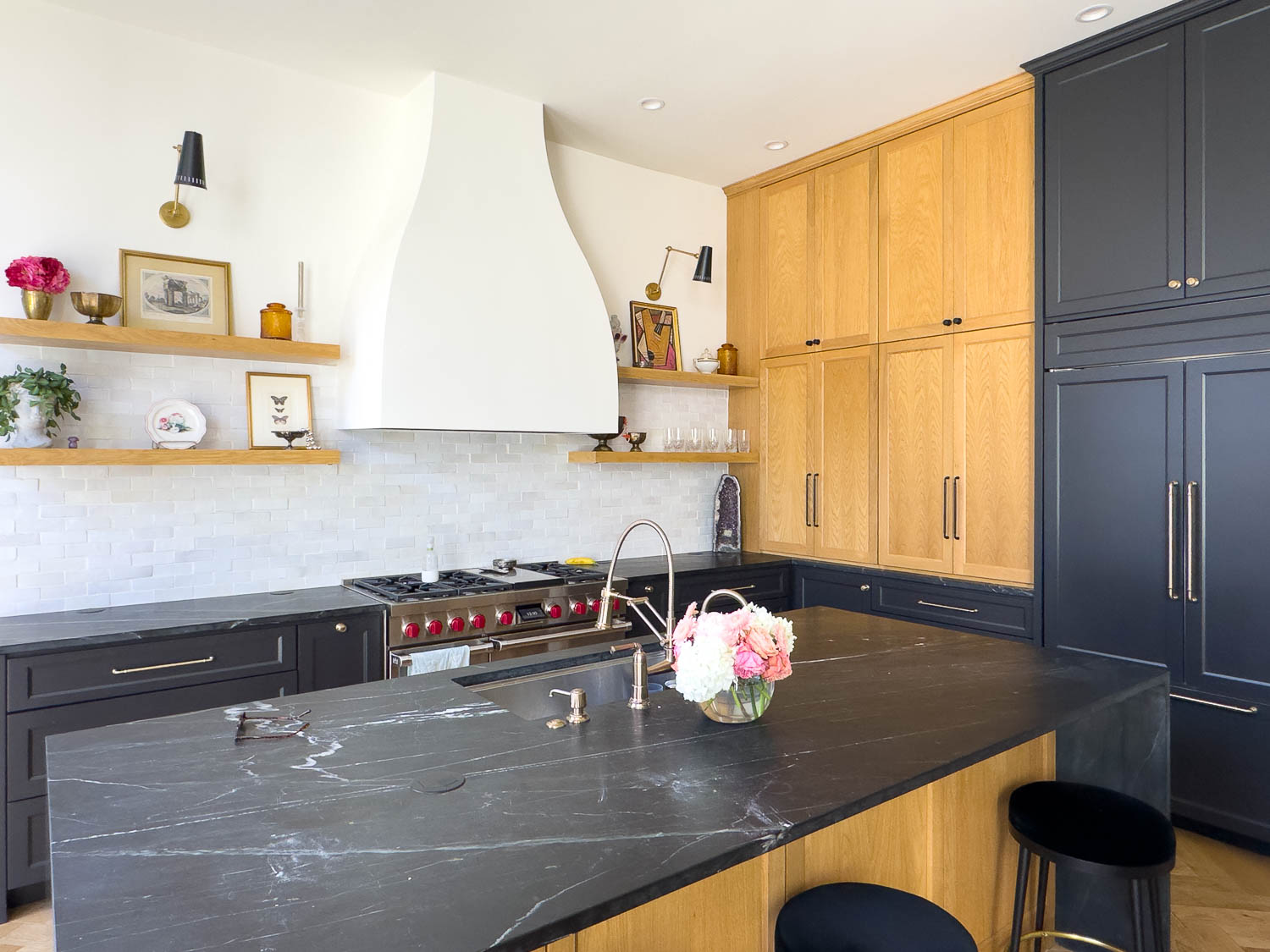 The scale is just as unforgettable: a 1,200-square-foot primary suite and a closet so expansive it’s the largest room in the home. Every piece is intentional—custom creations, Round Top finds, estate treasures, Facebook Marketplace gems, and local Austin art.