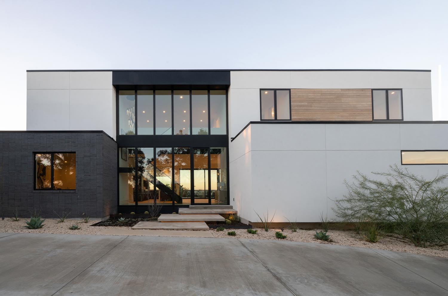 Set in hills of Westlake, this home is composed as a series of volumes, set into the terrain at the high point of Camino Alto. The architecture balances both weight and lightness—masonry walls anchor the home to the site intersected by expansive glass infill connecting views through the home and opening the main living to vistas across the landscape.