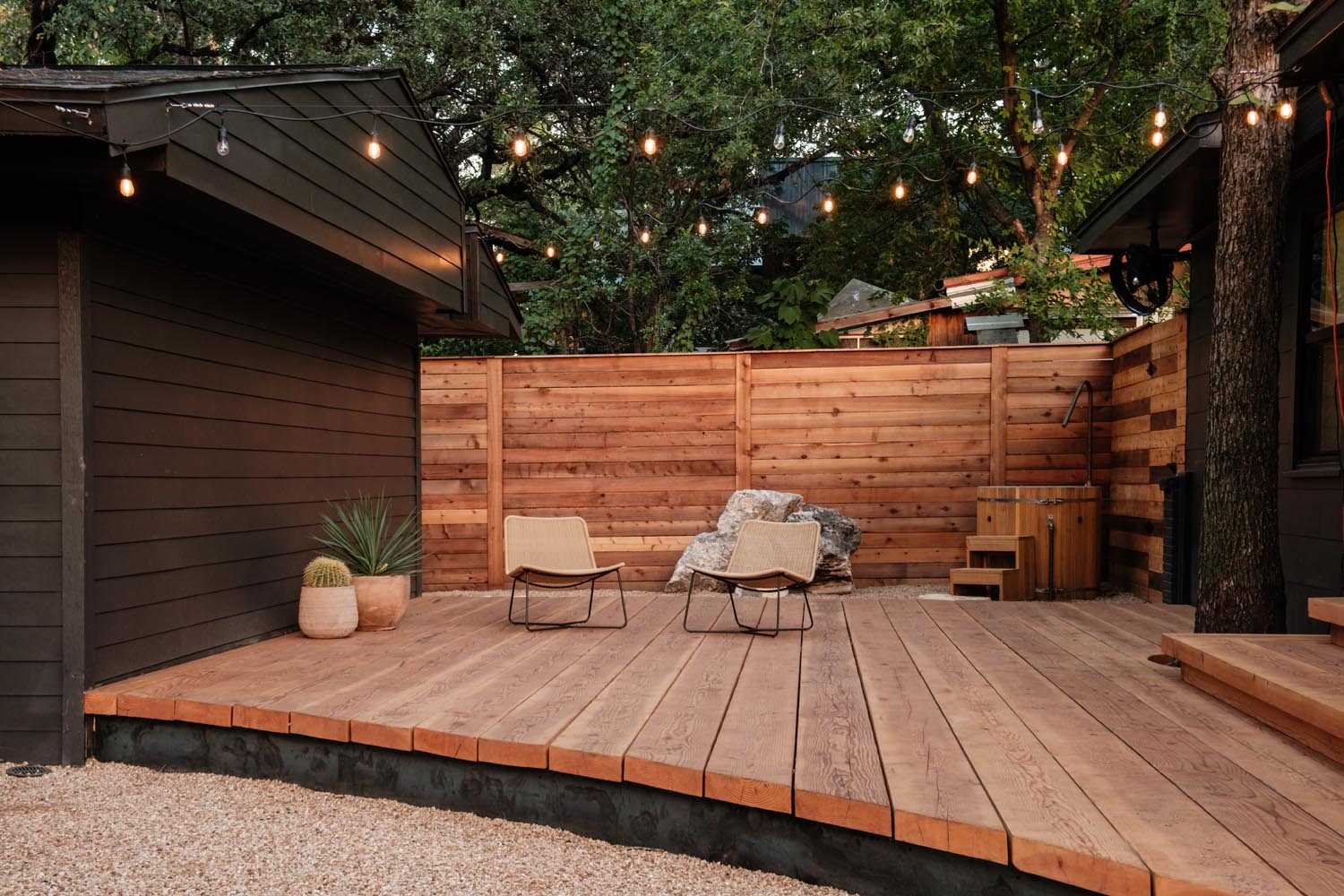 The boundaries of the property were treated as design opportunities rather than constraints. A thoughtfully detailed fence of sustainably sourced Golden Balau hardwood capped with steel plate frames the space from the street.